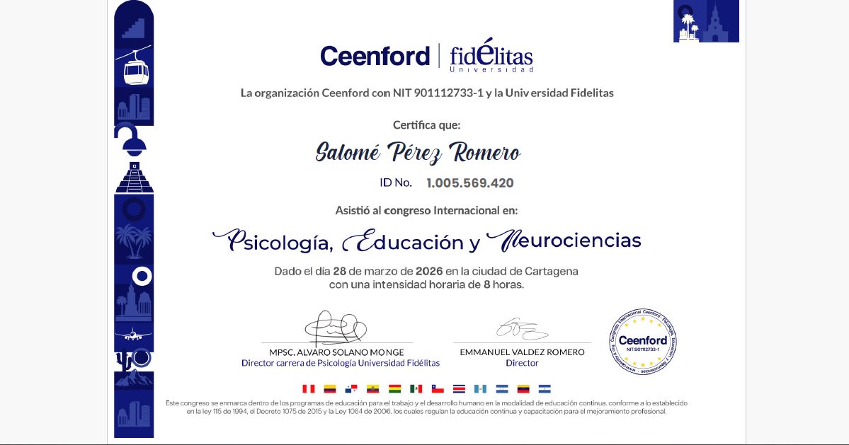 Mi proceso terapéutico con la psicóloga Salomé Pérez ha sido excelente. Me fue súper bien en las terapias, ya que me sentí escuchada, comprendida y acompañada en cada sesión. Su orientación fue muy acertada y me ayudó muchísimo a mejorar en varios aspectos personales. Estoy muy agradecida por su apoyo, profesionalismo y dedicación.