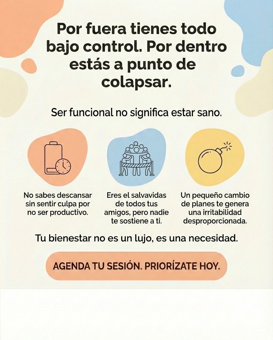 Soy Salomé Pérez Romero, psicóloga con enfoque cognitivo-conductual, y llevo 3 años acompañando procesos de sanación desde la virtualidad. Me niego a la atención clínica fría; te ofrezco un espacio seguro, humano y sin juicios para que aprendas a vivir tus emociones sin miedo. A través de herramientas prácticas, te ayudaré a frenar la impulsividad, silenciar los pensamientos de insuficiencia y recuperar el control.